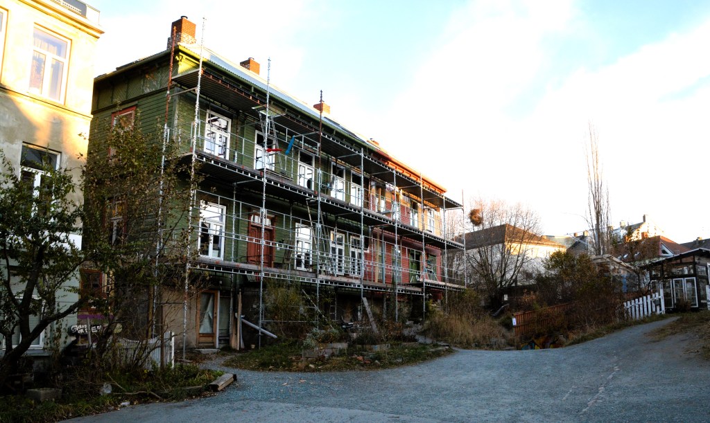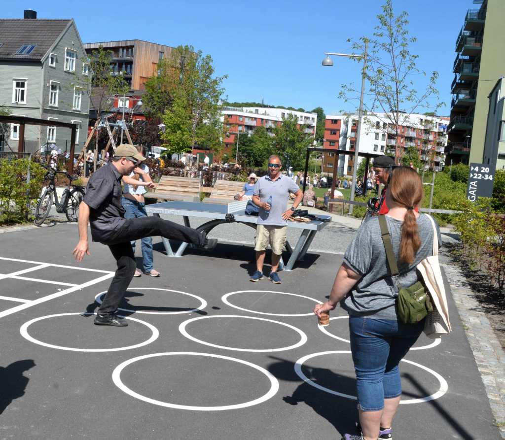 Etter turen i hospitalet går vi 300 meter langs Strandveien, hvor vi skal på omvisning på Svartlamon. Det sammenfaller med Svartlamo-dagen, og vi får se bydelen fra sin beste side.