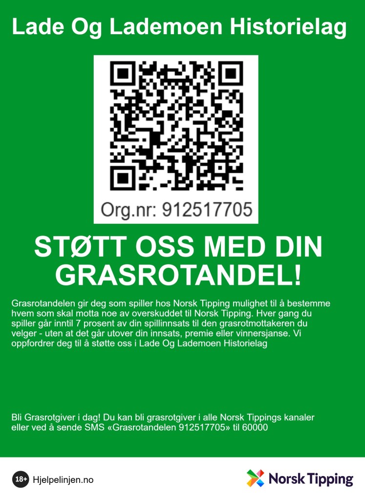 Bli medlem i Lade og Lademoen historielag? Bruk kontonummer 4200 01 22658 – enkeltmedlemmer kr. 150,- og kr. 200,- for familiemedlemmer pr. kalenderår. Da får du invitasjon til blant annet temamøter, turer og annet interessant. Send gjerne samtidig beskjed om innmelding med kontaktinfo til info@ladeoglademoenhistorielag.no.