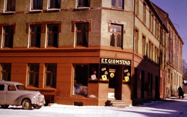 Mine foreldre flyttet hit ca. 1930, hvor de kun noen og tyve år gamle etablerte en liten kolonialforretning, som de drev sammen i over 40 år. Vi bodde i første etasje vegg i vegg med kolonialbutikken. Jeg ble født i 1935 og min søster Guri året etter. Hun var psykisk funksjonshemmet og hadde epilepsi, men mine foreldre stelte henne hjemme, på mange måter som en baby, helt til hun døde 30 år gammel. Den gang ble funksjonshemmede barn gjerne gjemt bort, men mine foreldre hadde henne hos seg hele tiden også i butikken hvor hun hadde en fast plass bak disken.